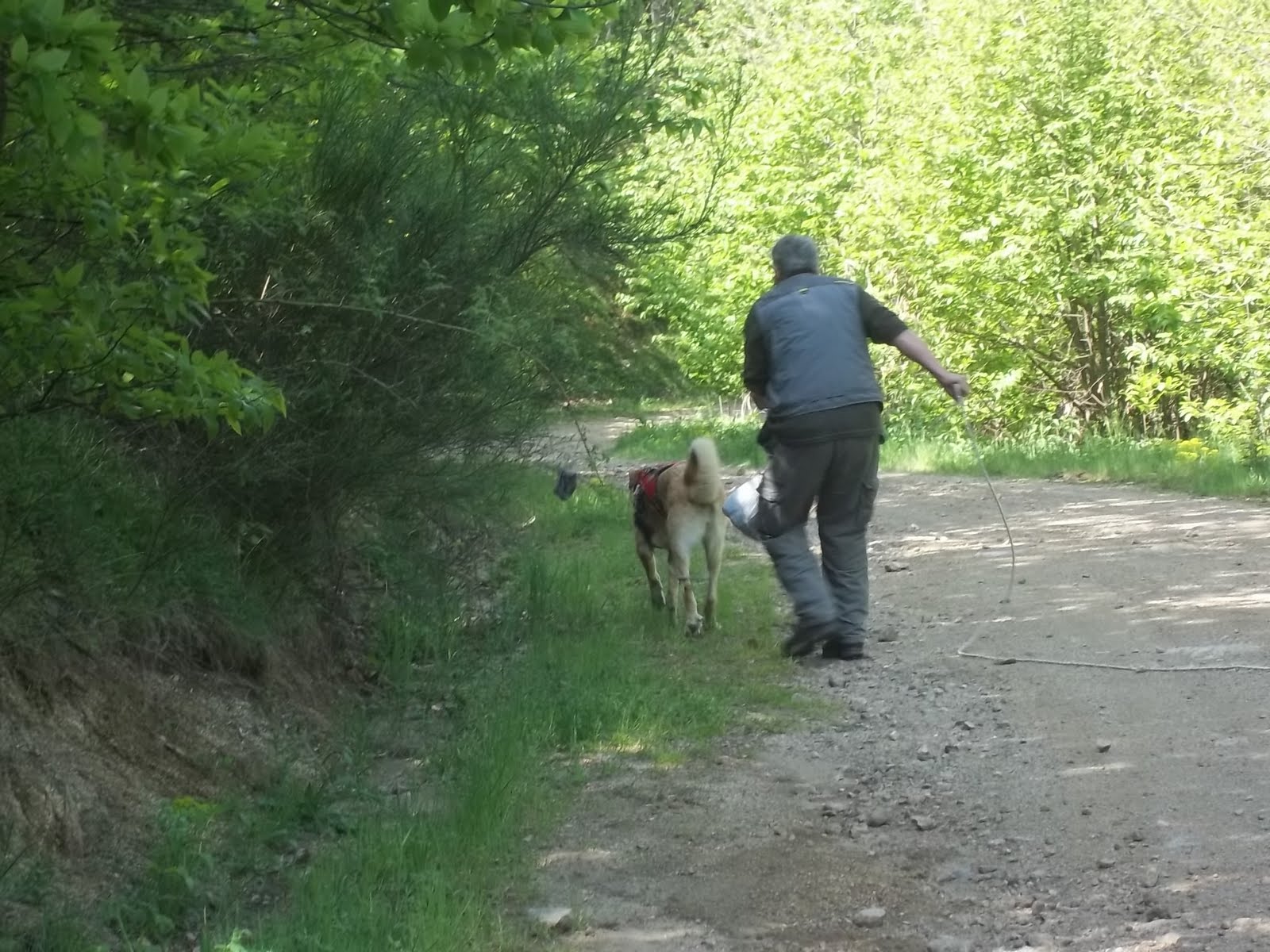 Le départ est enthousiaste.Les objetssont toujours aussi attractifs pour le chien. Les 2 premiers ne font l'objet d'aucune difficulté.Puis le chien explore un cul de sac et semble intéressé par des traces odorantes d'animaux sauvages.Il aura du mal à se remettre au travail et a besoin encore d'un soutien moral de la part de son maître.Le 3e objet est donc délaissé mais il s'agit d'un support peu habituel (papier journal) puis malgré un 2nd angle le chien repart vite. Le 4e objet est trouvé à l'opposé de la piste sans difficulté. Ensuite le chien a l'odeur de la victime dans le foulement et accélère conséquemment le rythme. Le 5e objet est délaissé car la victime est en visuel.Toujours une explosion de joie avec la victime et un vrai jeu s'engage entre maître et chien.Belle complicité.
